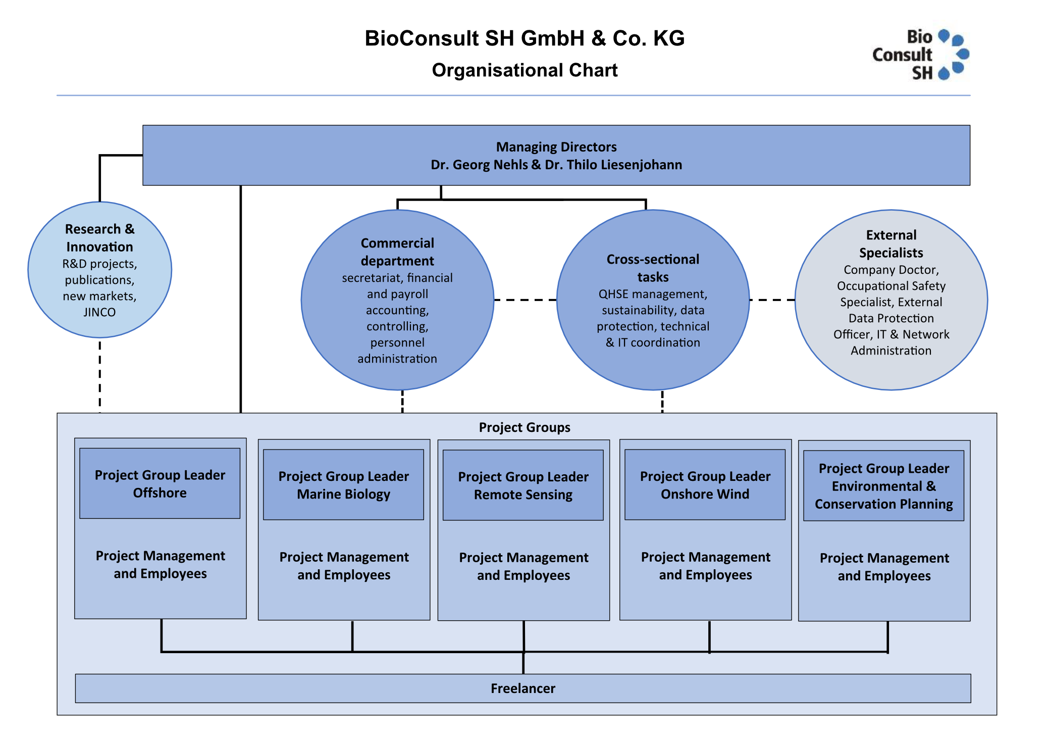 Together, the three companies form a European alliance with around 800 employees (Alliance for Nature). As the fourth shareholder, BioConsult SH Mitarbeiterbeteiligung GmbH holds a share of BioConsult SH GmbH & Co. KG on behalf of the employees.
