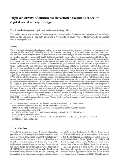 This publication is a translation of “Hohe Sensitivität automatischer Detektion von Seevögeln auf See auf digitalen Luftbildaufnahmen”, originally published in Vogelwarte 63, 2025: 191–215. https://www.do-g.de/dog