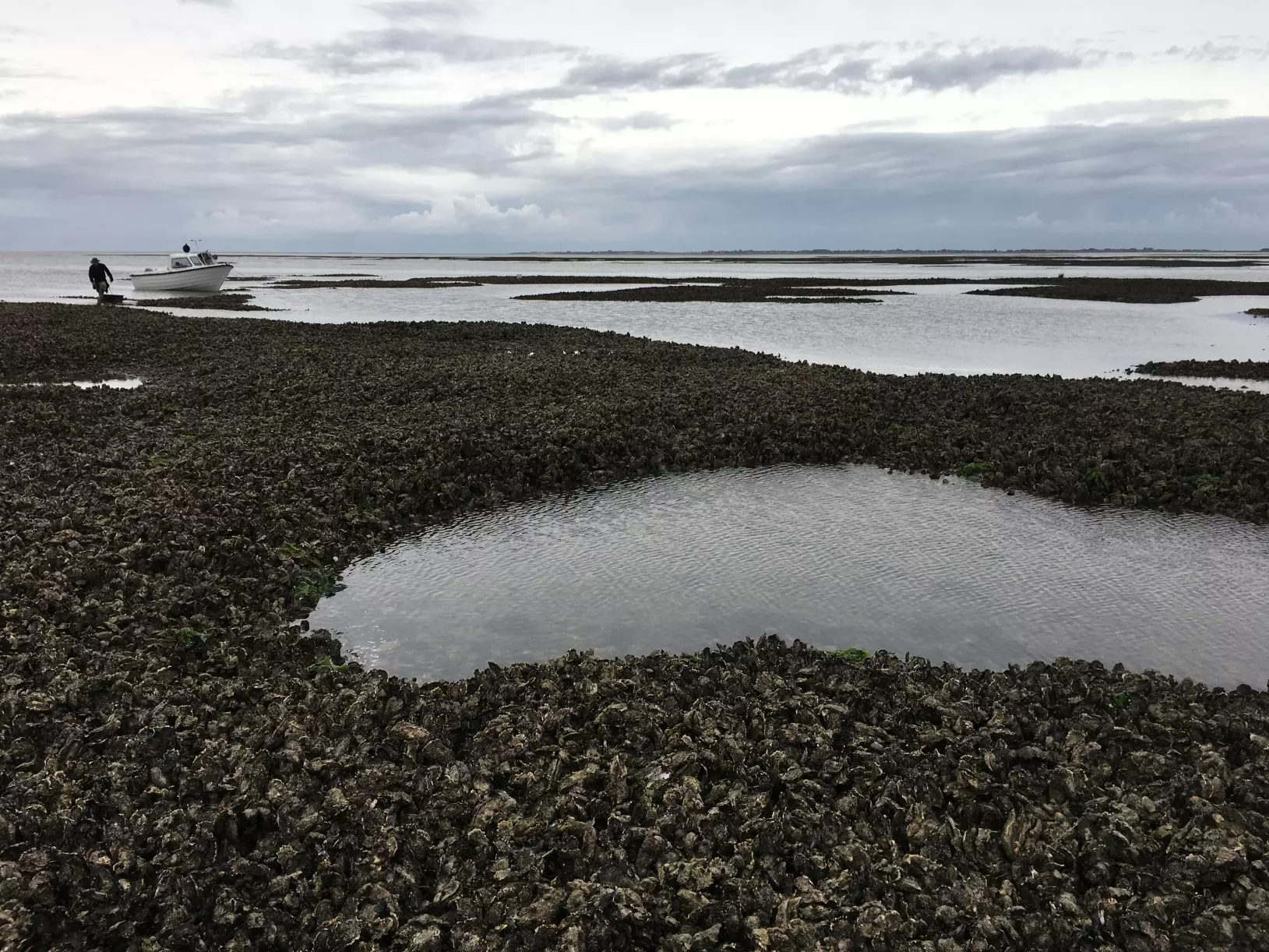 Beds of blue mussels and Pacific oysters